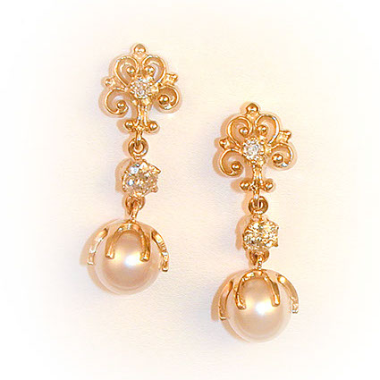 14ky Yellow Gold Diamond/Pearl Dangles