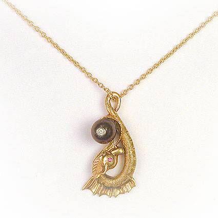18ky Black Pearl & Diamond Pendant