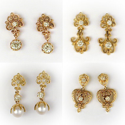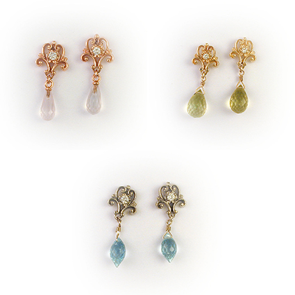 The true "Have It Your Way" earrings. You can choose your own metal color, stone, etc. Contact us for further information and pricing.